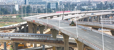 二环快速系统改扩建工程全长26.8公里,环绕45平方公里的主城核心区,是现代新昆明建设的“重头戏”。二环路改扩建工程中由中铁一局五公司承建的东二环小庄立交桥,由于处于东二环和北二环连接的重要节点,也是整个项目的控制性工程,引起各界关注,该工程总造价2.86亿元,共设桥梁4918.748延米,地面道路5600延米,钢筋混凝土防撞护栏9000余米,桥面铺装近6万平方米,总工期为10个月。
