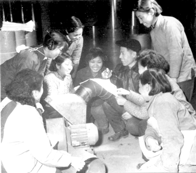 全国劳模王凤恩为纺织工人安装抽尘设施