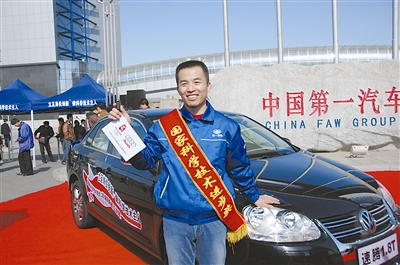 ▲中国第一汽车集团公司奖励王洪军一台速腾轿车