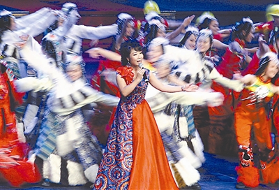 慷慨激昂的演唱、气势磅礴的舞蹈……晚上8时,晚会在歌舞《献礼》热烈激越的旋律中拉开了帷幕。