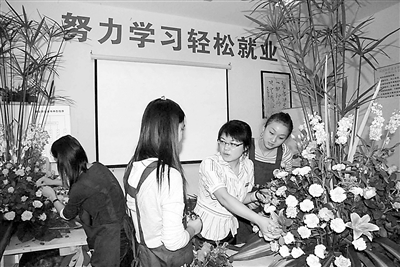 四川时代花木职业学校承担着成都市失地农民和城镇下岗人员劳动技能培训任务,目前已有200余名持政府就业培训券者在该校接受多项免费花艺培训后,实现了就业。