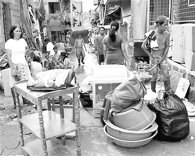 今年第20号强台风“卢碧”将以每小时10~15公里的速度向菲律宾移动,预计23日登陆菲律宾。为避免出现意外,菲政府已通知一些住在棚户区的居民,将家什从屋里搬出,以防房屋倒塌。肖劼 供图