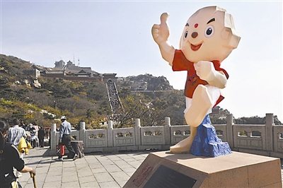 10月21日,在山东泰山的顶峰,第十一届全运的吉祥物——泰山童子迎接八方来客,成为站得最高的全运会吉祥物。