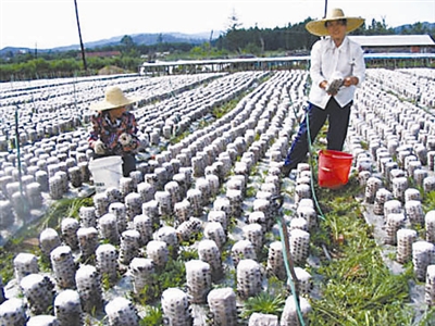 在“一帮一”工程和工会帮扶行动中,职工自营经济已成黑龙江省一些地方的经济支柱,许多困难职工因此走上致富之路。图为伊春林区一户职工年产值达20万元的木耳种植基地。