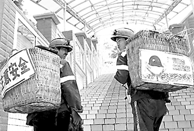 “把对安全的提醒挂在背篓上,在井下被矿灯一照就闪闪发亮!”10月14日中班,当重庆能源集团新田湾煤矿运输队二班员工王有全和黄国家出现在安全通道时,人们一下子就注意到他俩背篓上醒目的宣传画。在送工具的背篓上张贴精心设计的安全宣传画,正是他俩的“新发明”,目的就是随时提醒大家时刻注意安全。他们自创的背篓文化,如今已成该矿井下醒目的风景。曹永龙 摄