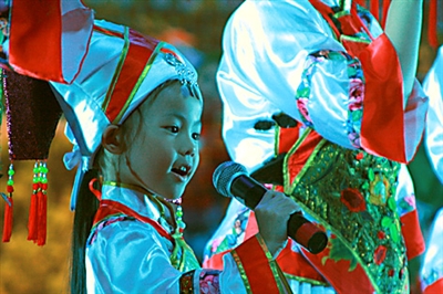 在舞台上,黄婉秋的女儿和6岁的小外孙女都成了她的传人,祖孙三代同场演绎“刘三姐”成了最受观众欢迎的节目。
