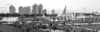 油田修建的广场成为员工群众休闲娱乐好去处,图为铁人广场全景。