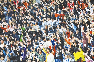10月24日,刘翔在第十一届全国运动会上的首次亮相,吸引了大批观众进场观赛。 本报记者 许之丰 摄