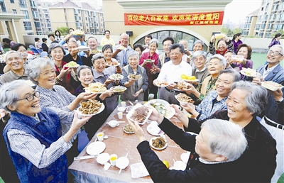 当日,上海市新江湾城街道举办“百位老人百家菜,欢声笑语度重阳”活动,来自街道社区的百位老人每人做一道拿手好菜,相互交流,共同品尝,在欢声笑语中喜迎重阳节。 新华社发(张金桥 摄)