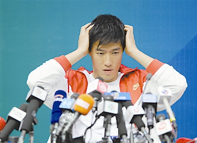 10月25日,刘翔夺冠后在新闻发布会上。新华社发