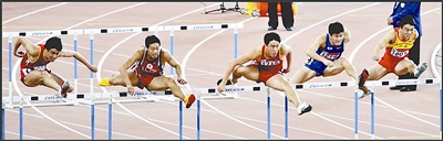 本报记者 许之丰 摄于十一运会男子110米栏决赛赛场