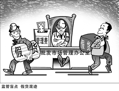 假货充斥,对于明知是假的消费者来说,买假货便宜;对于售假者来说,有生意就做,没有严格的市场监管,靠生产者自律是不可能的。这些从业者绝大多数都是农民工和无业市民,文化低、技能差,自身素质导致他们选择造假、售假为生存。