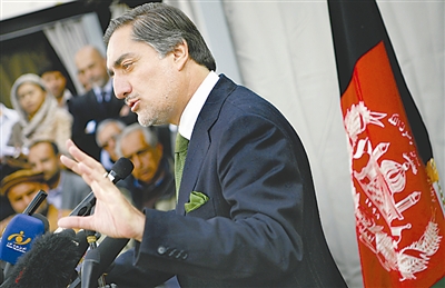 11月1日,阿富汗总统选举的两名候选人之一阿卜杜拉宣布,由于选举公正性毫无保障,他将不参加定于7日举行的总统选举第二轮投票。 新华社/路透
