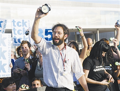 11月2日,在西班牙海滨城市巴塞罗那,环保人士手持闹钟参加“千钟齐鸣”活动。当日,两百多名环保人士聚集在2009年联合国第五次气候变化谈判会议现场外,举行“千钟齐鸣”活动,希望前来参加会议的代表尽快达成一份公正、合理的协议,以应对气候变化的威胁。 新华社记者 陈海通摄