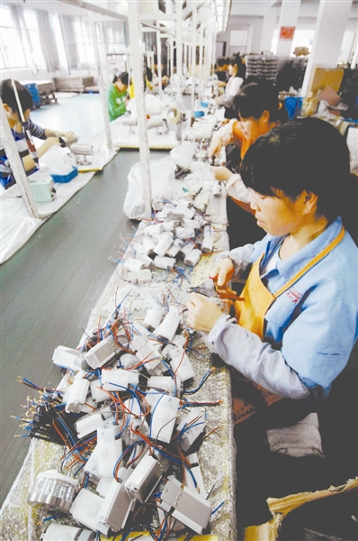 10月30日,宁波康辉灯具有限公司职工在生产灯具产品。据统计,2009年1月至8月份,浙江省规模以上中小企业实现工业增加值4119亿元,同比增长3.1%,已连续3个月实现正增长;实现利润893亿元,同比增长0.3%,年内首次实现正增长。 新华社记者 王小川 摄