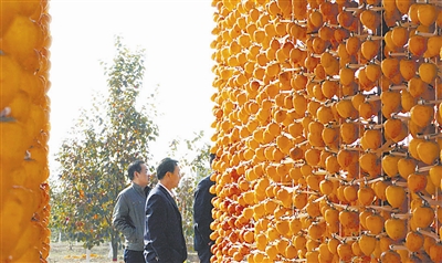 金秋时节,“中国柿子之乡”陕西富平县进入柿子晾晒季节,当地群众经过削皮、挂晒等工艺将柿子加工成柿饼。据了解,陕西富平县已建成优质柿子基地10.6万亩,年产鲜柿4000万公斤,加工柿饼800万公斤。富平柿子、柿饼畅销海内外,成为当地农民致富的“宝贝”。