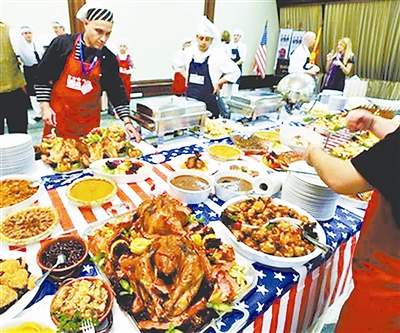 感恩节是美国和加拿大每年一度的重要节日。图为11月4日在马其顿首都斯科普里的美国大使馆里,厨师们正忙着准备丰盛的感恩节大餐以招待来宾。肖劼 供图