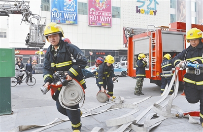 2009年11月4日,天津公安和平分局与消防和平支队在天津和平区津汇购物广场举行“2009年反恐防暴暨灭火救援疏散联合演习”,以检验公安防暴、刑侦、消防等警种处置突发事件的协同配合、快速反应和现场处置的能力。苏北 摄