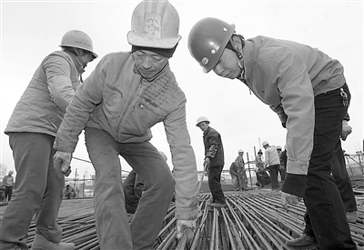 11月11日,在北京动车段工地,殷雨(右一)正在进行工程质量检查。殷雨今年24岁,两年前大学毕业后来到中铁电化局西铁工程公司北京动车段项目部工作,现在已经升职为安全质量部部长。西铁工程公司大胆使用青年职工,让他们在一线挑大梁,在北京动车段项目部近百人的职工队伍中,有大学学历的青工占到了1/3,像殷雨这样的30岁以下青工已经有3人走上了领导岗位。