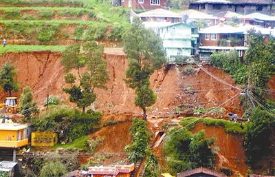 11月11日,印度南部泰米尔纳德邦小镇尼尔吉里斯发生大面积山体滑坡,大量土石将许多房屋掩埋。据当地媒体报道,此次山体滑坡是由于该地区连日暴雨造成,目前事故已造成43人死亡,近百人受伤,救援工作仍在继续中。 新华社发