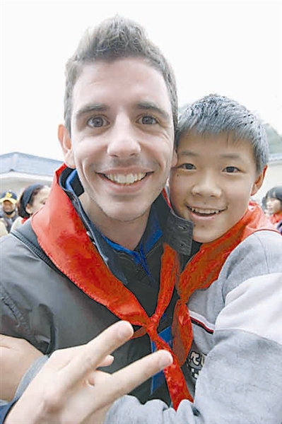 当日,来自19个国家的160多名北京语言大学留学生和老师走进学校捐资援建的四川大邑县金星学校,与该校师生进行交流联欢。 新华社记者 高学余 摄