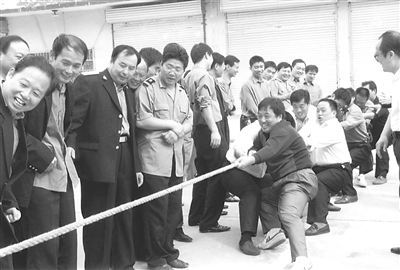 济南铁路局聊城车务段积极组织开展篮球、台球、拔河等体育比赛活动,既丰富了职工的文化生活,又缓解了职工在工作中的压力。图为该段组织职工开展拔河比赛时的情景。