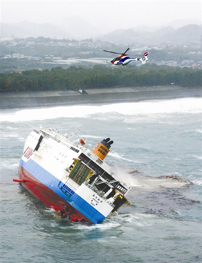 11月13日,在日本三重县熊野市附近海域,渡轮“有名”号发生船体倾斜事故。据当地媒体报道,船上28名乘客和船员已平安获救。 新华社/路透