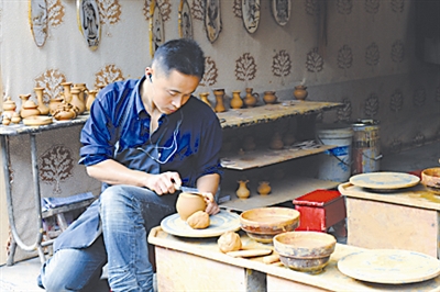 ③陶艺作坊里的作品充满蜀文化的底蕴。本报记者 张宪 摄