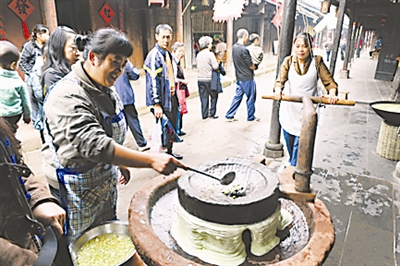 ④现磨的豆花是古镇的特色美味。本报记者 张宪 摄
