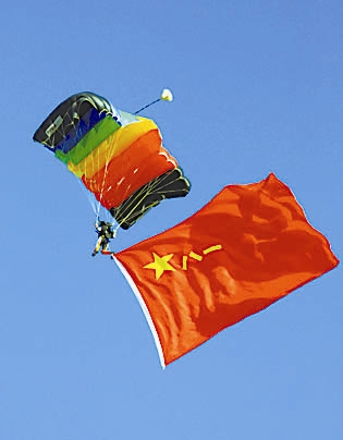 11月15日,庆祝人民空军成立60周年飞行和跳伞表演在北京沙河机场举行,空军八一飞行表演队和空军跳伞运动大队以精湛的飞行和表演技术,为中国人民解放军空军60华诞献上了一份精彩的贺礼。新华社记者 查春明 摄