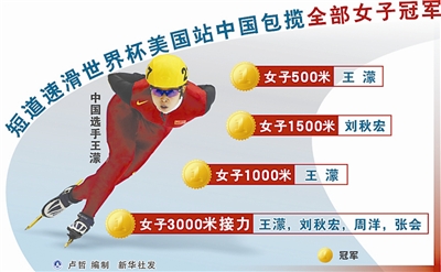 在11月16日凌晨结束的短道速滑世界杯美国站比赛中,中国包揽全部女子冠军。 新华社发