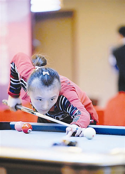 11月17日,中国选手周豆豆在比赛中。当日,周豆豆在2009世界女子9球锦标赛资格赛中战胜中华台北选手詹雅婷,获得正赛资格。正赛将于11月19日至22日举行。