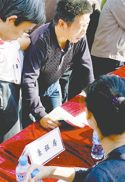 10月17日,河南郑州一次关于经济适用房的活动上,市民正在咨询廉租房的相关问题。 沙浪 摄