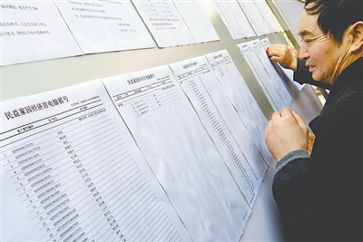 11月19日,湖北宜昌参加电脑摇号的市民正在查看自己的经济适用住房公示号码。当日,该市采用电脑摇号方式,向城市中低收入家庭无房户公开销售700套经济适用住房。刘君凤