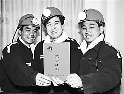 安徽淮北矿业刘店煤矿综掘二区职工杜发亮(中)年底收获颇丰:由普通职工提升为班长,他创造和实施的挡煤板连接革新技术和班组工作效率提升法,让班组月度综掘进尺连续突破历史记录。他所带领的班组安全生产、进尺速度、环境卫生等一直保持在全矿同行前列!瞧,班组员工拿着刚从矿上领到的荣誉证书高兴得合不拢嘴。吕 刚 摄
