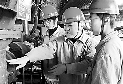 岁末盘点,中铝河南分公司氧化铝一厂四车间烧成班员工、团支部书记王悦(中)“双喜临门”:所领导的车间团支部在荣获省“五好团支部”称号的同时,他又成为车间最年轻的工人技师。今年,他曾带领12名团员青年结合岗位特点,创新开展以小课堂、小课题、小整改等为内容的“六小控亏增盈”特色活动,提高了班组员工素质。这不,11月18日,他设立的小课堂又开讲了。李明航 张静 摄