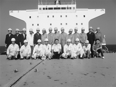 “拼了命也要脱开铁梯”,离铁梯最近的大副陈正伟和实习三管轮赵亮互相使了个眼神,顾不上前面就是黑洞洞的枪口,快速冲了上去,奋力将重重的铁梯抬起、扔下,挫败了海盗挂梯登船的企图。