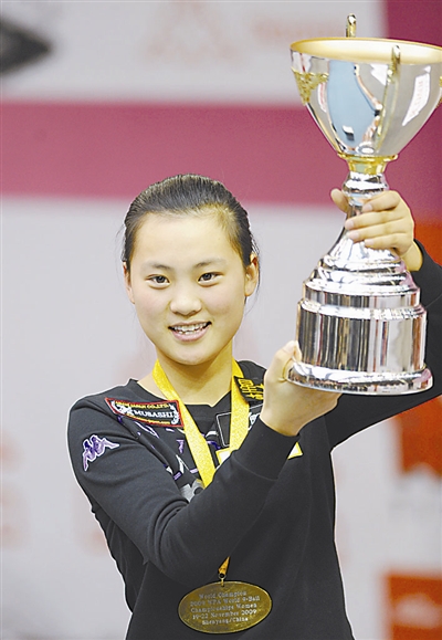 11月22日,在沈阳举行的2009年世界女子9球锦标赛决赛中,中国选手刘莎莎战胜英国选手卡伦·科尔,夺得冠军。新华社记者 李钢摄