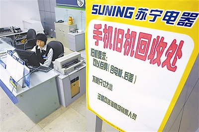 目前,空调、彩电、冰箱、洗衣机、电脑五大品类都可以享受国家“以旧换新”的政策补贴,但对于人均保有量更高的手机品类暂时还没有相关政策优惠。卖场与厂家自发将以旧换新的品类和限价进行延展,不仅把加湿器等小家电列入“以旧换新”行列,还打破政府最高限价进行补贴,以期提高高端电器的购买率。据悉,上海苏宁5天回收4800余台手机。翁磊 摄