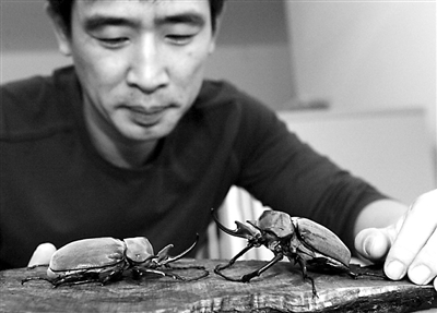 在沈阳市内一处高层住宅内,32岁的郝健听着流行音乐,独自一人照料着他的“昆虫伙伴”。从2000年起,出于对“宠物昆虫”的迷恋,郝健放弃了工作,开始专心研究“宠物昆虫”的习性和养殖方法,摸索出了一套在北方从配料到繁育、养殖的科学方法。如今,他先后投入了5万余元积蓄,建起“昆虫文化工作室”,养殖40多个种类的1000多只幼虫和成虫。