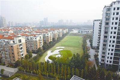 11月25日,上海,在国家无偿划拨的公共绿化用地黄兴绿地上,正在建高尔夫练习场。杨浦区绿化市容局有关负责人表示,按照有关政策,公共绿地低廉收费也是允许的,目前已经建成的高尔夫练习场尚未对外开放,未来收费可能将是每人每小时20元~80元。据了解,此举在当地引发争议。