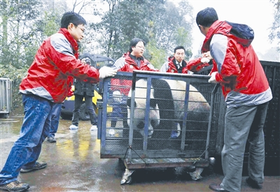 11月27日9时,大熊猫“网网”“福妮” 开始在中国保护大熊猫研究中心雅安碧峰峡基地装笼,下午它们将从成都双流机场乘机前往澳大利亚,开始为期10年的生活。