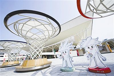 第五届东亚运动会将于12月5日至13日在香港举行,香港的主要街道和建筑都装饰了宣传品,充满迎接体育盛会的气氛。图为香港体育馆广场上装饰着东亚运动会吉祥物(摄于11月30日)。