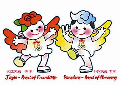 12月2日,2013年第六届东亚运动会组委会在天津公布了该届东亚运的会徽和吉祥物图案。第六届东亚运动会的主题是“和平、友谊、和谐、发展”。吉祥物天使,又称天津的使者,分别取名津津(左)和东东,寓意“天津东亚”。上图为吉祥物津津(左)和东东。会徽以“津”字的拼音字头“J”为基本元素展开设计,构成象征海河浪花和运动跑道的创意图形,与祥云图案同构,反衬出飞腾向上的“吉祥鸟”形象,形成具有动感、充满韵味、体现运动会主旨精神的标志图形,会徽的红、绿、蓝色,代表着东亚各个国家和地区的人民,以及他们的寄托和愿望。下图为会徽图案。 新华社发