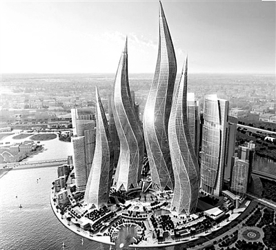 “风中火烛”大厦——由四座高度不等的大厦构成,看上去像是烛火在闪动。