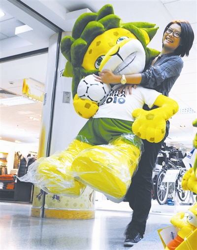 2009年11月,2010南非世界杯吉祥物“扎库米”亮相北京某商场。胡雪柏 摄