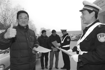 12月1日,一位驾驶员朋友对着前来发放交通安全宣传品的山东省青州市交警大队二中队交警说:“青州交警队把安全工作做到了俺们的心坎上,你们的服务我很满意!”近年来,青州市交警大队二中队本着“一切让驾驶员满意,一切让社会满意”的原则,认真严格执法,周到热情服务,赢得了人们的广泛好评。