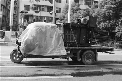 12月1日早晨,武汉市的天气因受寒流影响,气温骤降。此时,在107国道武汉市东西湖区走马岭路段,一辆农用三轮车司机为抵御寒风,用一块塑料布将自己的农用三轮车驾驶室包裹了起来,在国道上疾驰。多危险呀!路上行人看到这种情形不由得为路上的司机、行人提起了心。好在其行驶不远就被执勤交警拦住并予以纠正。