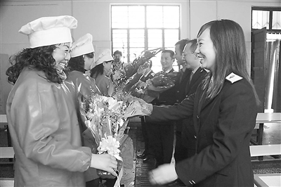 12月2日,郑州铁路局组织开展的“劳模演讲去一线”活动被“抢”进新密车站。原来,活动计划中没有新密站,但劳模的演讲轰动了全局基层,在新密车站的力邀下,劳模们到新密站加演一场。报告团成员共和国铁路楷模王德明、全国铁路技术能手徐鹏等5名劳模在演讲报告会结束后,还走进一线参观了车间并与职工交流工作心得。在宋寨站职工食堂,当劳模们得知食堂5名女职工就是新密车站有名的“五朵金花”时,主动将报告会上收到的鲜花献给了她们。张建峰 摄