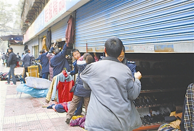12月7日,西安,工商执法人员检查时遭到经营户阻挠。